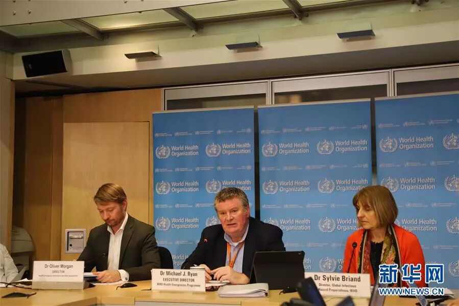 2月14日,在瑞士日内瓦,世卫组织卫生紧急项目负责人迈克尔·瑞安(中)在例行记者会上发言。 新华社记者 陈俊侠 摄