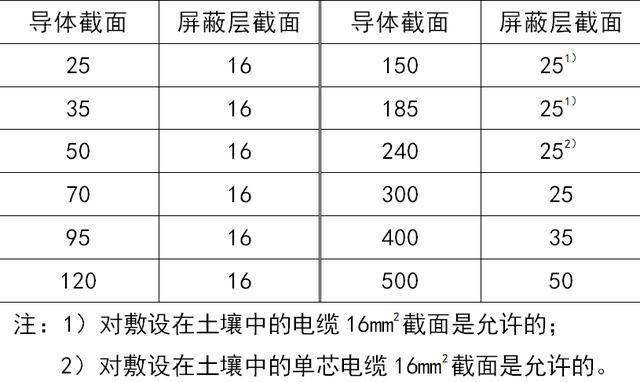 在未获得短路电流的情况下,可参照表1(DIN-VDE0276屏蔽层的最小截面积,单位mm2)选择金属屏蔽截面进行设计。