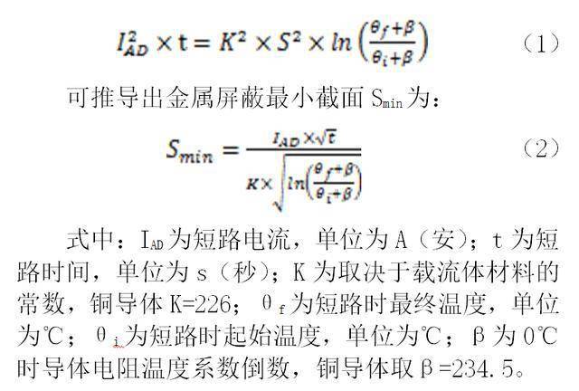 金属屏蔽的截面直接影响电缆承受故障时短路电流的能力,若截面积太小,当短路电流通过时将产生过热或烧断,并损坏绝缘。因此,需要根据故障电流容量确定金属屏蔽的截面。