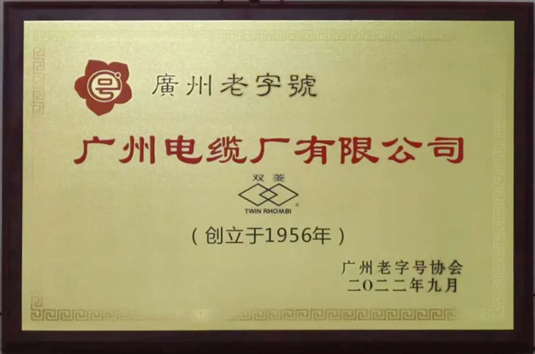广州电缆厂有限公司荣获广州老字号颁证授牌仪式于2022年10月18日举行,广州市老字号协会专家领导一行到广州电缆现场颁发“广州老字号”证书、授予“广州老字号”牌匾。广州工控领导、广州电缆领导干部代表及已退休高工代表参加仪式。据悉,广州电缆是电缆行业中唯一获此殊荣的公司。